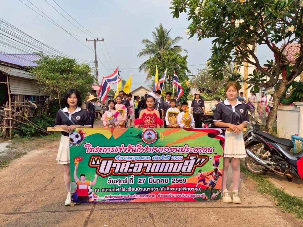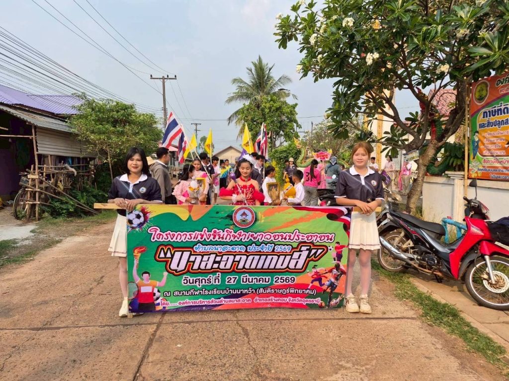 Posted in กิจกรรมและโครงการต่างๆ วันที่ 27 มีนาคม 2569 เวลา 08.30 น. กองการศึกษาฯ องค์การบริหารส่วนตำบลนาสะอาด ได้จัดโครงการแข่งขันกีฬาต้านยาเสพติด “นาสะอาดเกมส์” ประจำปี 2569 ณ สนามกีฬาโรงเรียนบ้านนาหว้า(สันติราษฏร์พิทยาคม) โดย นายชัยณรงค์ สุระดะนัย นายอำเภอสร้างคอมให้เกียรติเดินทางมาเป็นประธานพิธีเปิดการแข่งขันกีฬาฯ ในครั้งนี้ โดยมี นายประไพร คำพิสัย นายกองค์การบริหารส่วนตำบลนาสะอาด และสมาชิกองค์การบริหารตำบลนาสะอาด ผู้นำท้องที่ ผู้นำท้องถิ่น คณะครู นักเรียน และประชาชนในพื้นที่เข้าร่วมพิธีอย่างพร้อมเพรียง ในการนี้ ประธานในพิธีได้กล่าวให้โอวาทแก่ผู้เข้าร่วมการแข่งขัน โดยเน้นย้ำถึงความสำคัญของการเล่นกีฬาอย่างมีน้ำใจนักกีฬา รู้แพ้ รู้ชนะ รู้อภัย และขอให้ทุกภาคส่วนร่วมกันสนับสนุนกิจกรรมที่เป็นประโยชน์ต่อสังคมและเยาวชนอย่างต่อเนื่องสืบไป mungmee